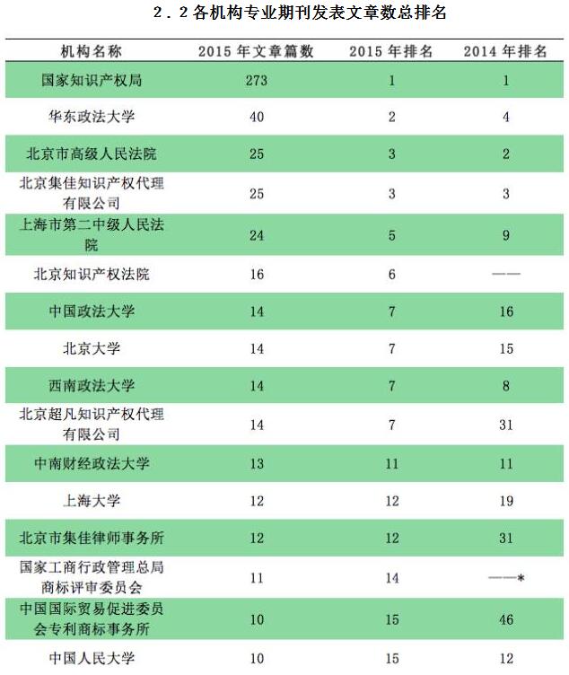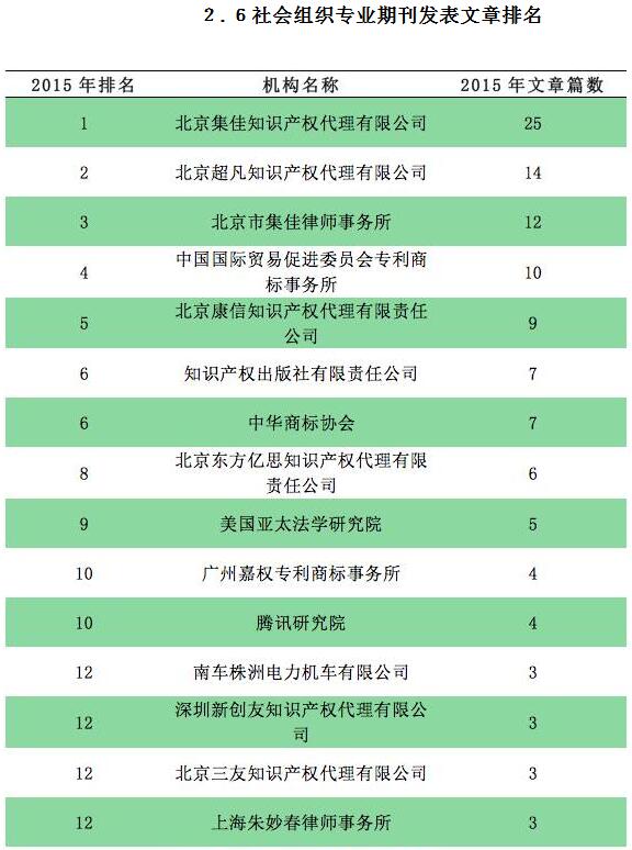 2015年度知識產權專業文章發表排行榜公布 集佳蟬聯社會組織類第一