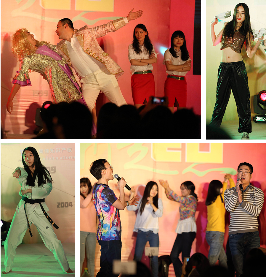 在經久不息的掌聲中,集佳20年年會會議部分圓滿結束,一曲熱情洋溢的《奔跑》活力開場,十幾位青年才俊“歌神”跳上舞臺,熟悉的旋律,高亢的領唱,歌聲很快感染了全場。《集佳,對你愛不完》、《小雞舞》、《小蘋果》、《動感現代舞》紛紛精彩上演,《歌舞串燒》更有國外客戶友情出演,還有穿越大戲《步步蛇精》,匪夷所思的故事情節吸引了眾人的眼球,《跆拳道舞》由已獲跆拳道黑帶的流程部同事領舞。集佳合伙人也全力打造三句半《四大才子夸集佳》,作為獻給集佳所有員工的一份禮物。