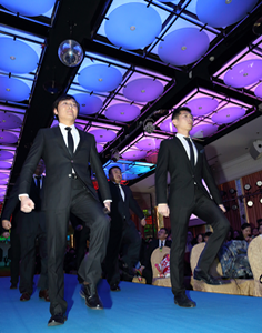 隨后踏上星光大道的二十余個部門,逐一閃亮登場,個個創(chuàng)意無限。通過他們的精心裝扮和表演,能感受到滿滿的祝福撲面而來——小清新和男女搭配的國際電學部、舉著元寶扮成福仔旺仔高喊“馬上有錢”的財務部、在高大帥帶領(lǐng)下由小伙伴和女漢子們組成的流程部、帶著化學元素符號入場的化學部、乘坐集佳年會專列高舉“集賢納士登絕頂,佳期尤夢獵蒼鷹,日逐風雨凌云志,本自策馬笑傲行”壯語的日本部、還有包公帶著眾衙役趕來的訴訟部……在璀璨絢麗的燈光下,他們神采飛揚,亦或穿越經(jīng)典、賣萌扮嫩,亦或演繹紅色風暴,性感來襲,將最具個性的風采一覽無余地展現(xiàn)在集佳星光大道上。