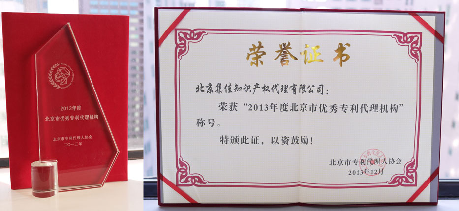 2013年11月,北京市專利代理人協(xié)會開展了“2013年度北京市優(yōu)秀專利代理機(jī)構(gòu)和優(yōu)秀代理人”的評選活動。經(jīng)過材料申報(bào)、材料審查、專家評審打分、結(jié)果公示等環(huán)節(jié),最終評選出十家優(yōu)秀代理機(jī)構(gòu),集佳成功入選。集佳合伙人上臺接受了汪洪局長等領(lǐng)導(dǎo)頒發(fā)的證書及獎(jiǎng)杯。