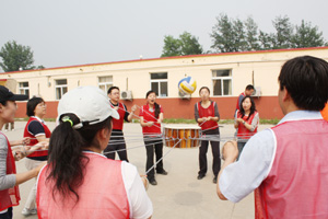 第二天一早,挑戰正式開始:動感顛球、驛站傳輸、移動高爾夫、不倒森林、高空斷橋、合力過橋……當培訓師將一個個項目公布后,大家發現,只有認真分析隊員優勢,合理分配資源,達到默契的協作和配合,而且中間環節沒有大的失誤和錯誤,才能完成任務。炎炎烈日下,雖然隊員當中有的身寬體胖,有的恐高,有的身體協調能力差,但沒有一個被困難嚇倒,沒有一人被落下,“不拋棄、不放棄”成為每個隊員心中的信念。在隊長的帶領下,大家克服重重困難,團結協作,互相鼓勵,全部完成了挑戰任務,而且有的團隊還通過完美的配合創造了破紀錄的佳績。