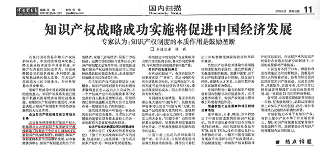 《中國貿(mào)易報(bào)》:知識(shí)產(chǎn)權(quán)戰(zhàn)略成功實(shí)施將促進(jìn)中國經(jīng)濟(jì)發(fā)展