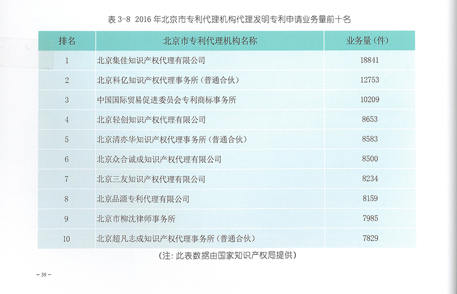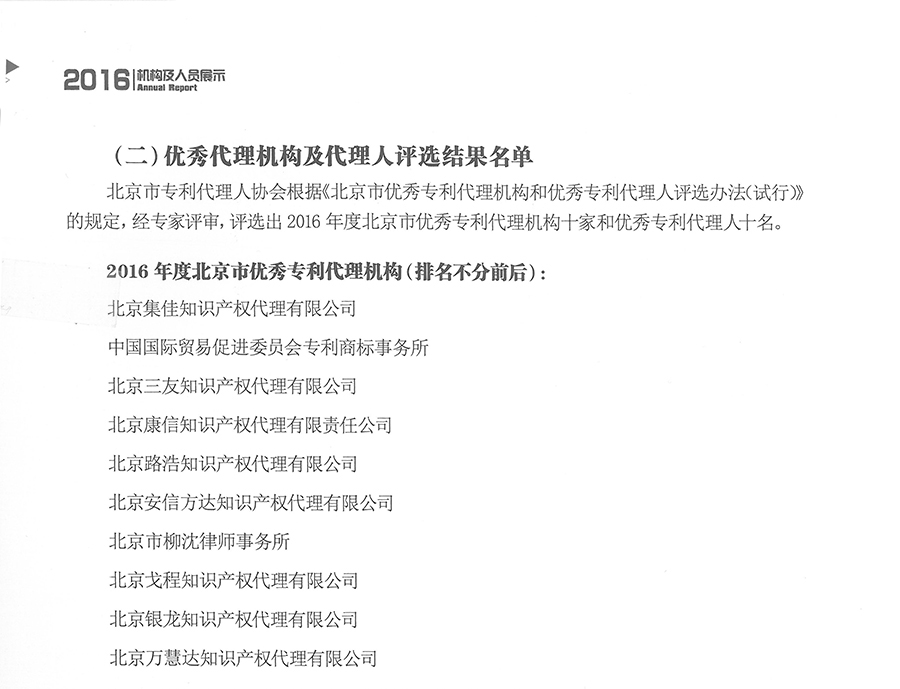 日前,北京市知識產權局發布《2016年度北京市專利代理年報》,在北京專利代理機構業務排名中,集佳以代理量18841件的成績在發明專利申請量中再次蟬聯第一,并在多領域有效發明專利量排名中成績優秀。此外,經過專家評審,集佳憑借綜合的業務能力和優質的專業服務,連續四年入選“北京市優秀專利代理機構”,并在北京市專利代理人協會于2016年首次啟動的專利代理機構等級評定工作中榮獲“AAAA”代理機構。