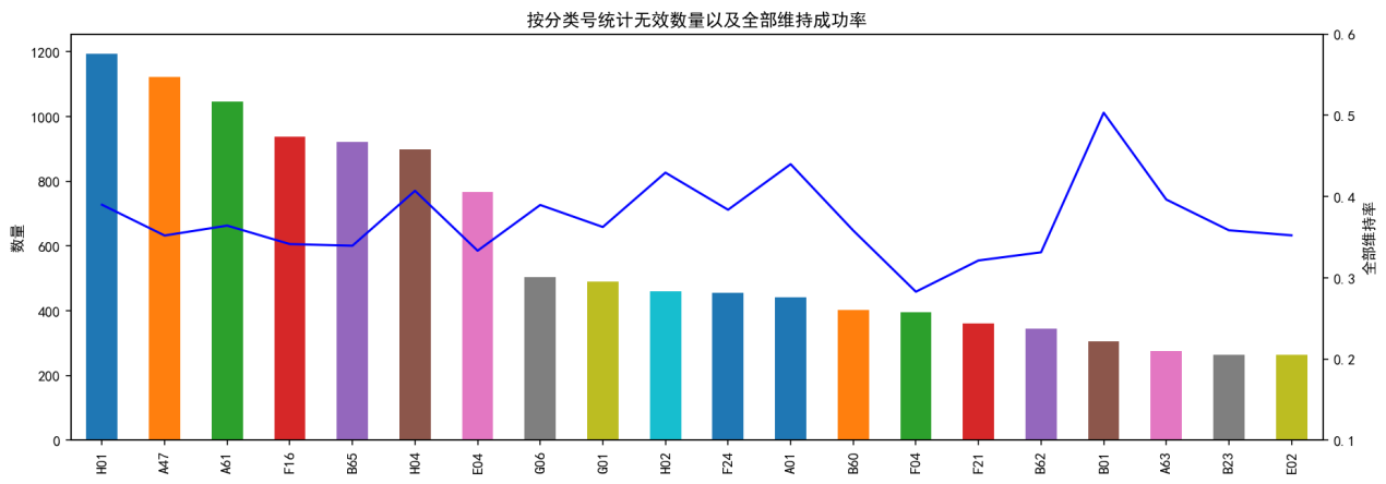 3.2 按分類號統計無效數量以及全部維持決定占比