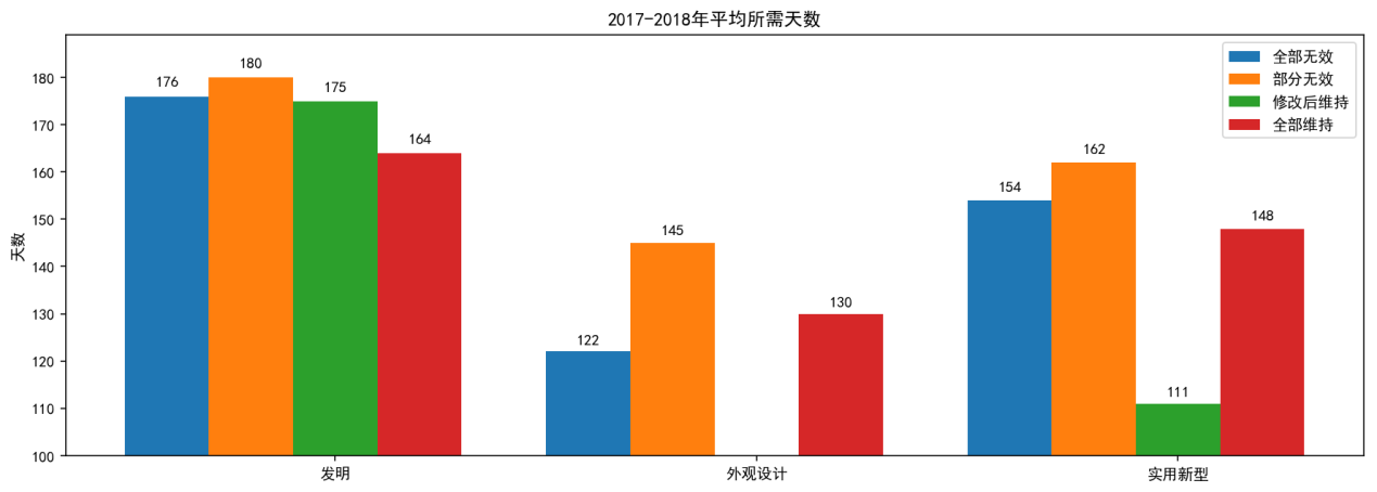 上圖為2008-2018年度無效請求作出決定平均所用天數。從上圖可以看出: