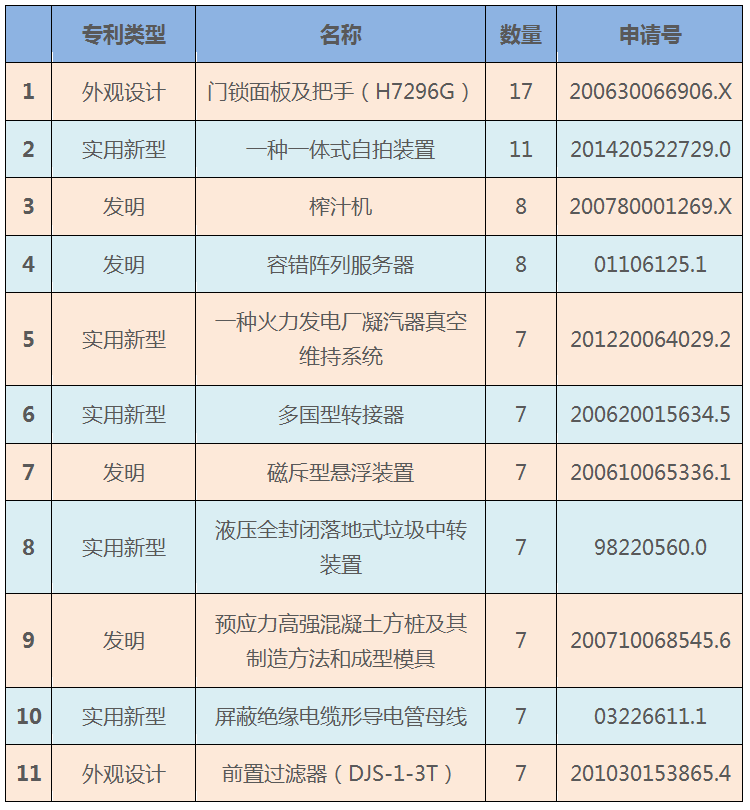 專利被無效宣告請求的次數較多,一般說明專利穩定性較好(否則會被輕易無效)且具有較高價值(否則不會被多次請求無效)。在被無效宣告請求次數最多的專利中,與發明專利相比,實用新型、外觀設計的占比并不少。可見,撰寫水平高的實用新型、外觀設計專利對專利權人的價值并不小于發明專利。