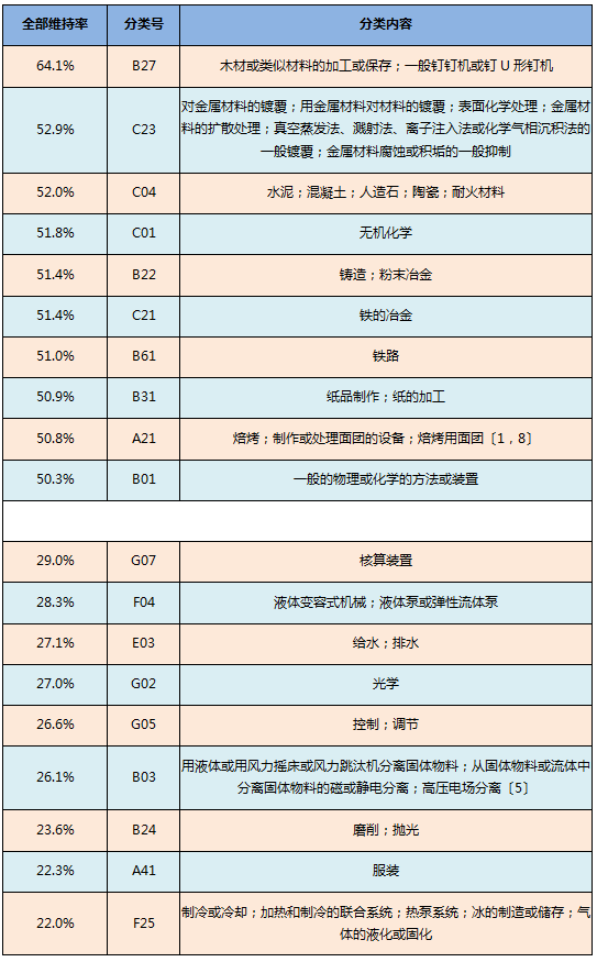 總體上看,無機材料(如木材、金屬、水泥等)及其加工(如鍍覆、表面處理等)等較為基礎的領域無效請求的全部維持率相對較高;而光電等的具體應用領域無效請求的全部維持率相對較低。