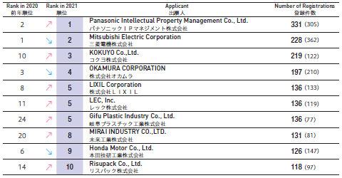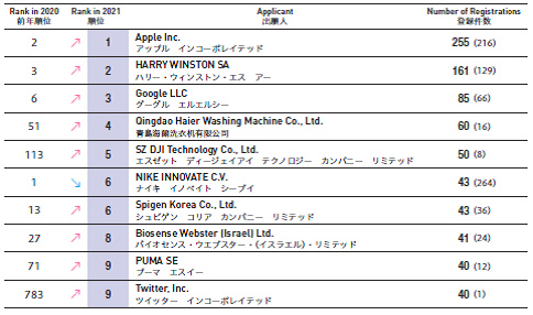 前5個國家外觀專利申請量統計(除日本本國申請):