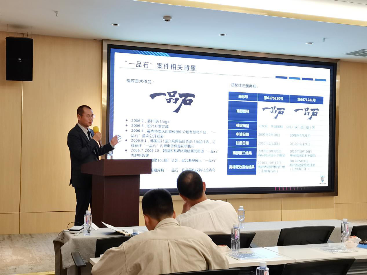 閆春德律師從自己代理的多個案例為企業說明反守為攻類、馳名認定類、商標商號復合類等商標案件的注意事項,特別是“一品石”案件,引起了問答環節各參會嘉賓的積極提問:商標字體是否會侵犯著作權?立體造型的作品申請外觀專利還是立體商標更好?……閆律都耐心地做出解答。