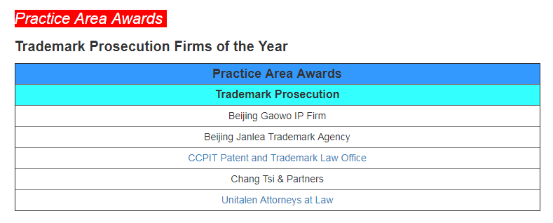近期,國(guó)際權(quán)威知識(shí)產(chǎn)權(quán)媒體《亞洲知識(shí)產(chǎn)權(quán)》(Asia IP)發(fā)布2023年度中國(guó)知識(shí)產(chǎn)權(quán)大獎(jiǎng)(2023 China IP Awards)獲獎(jiǎng)名單,集佳憑借在知識(shí)產(chǎn)權(quán)業(yè)務(wù)領(lǐng)域的杰出表現(xiàn)、行業(yè)口碑以及市場(chǎng)評(píng)價(jià),榮列“商標(biāo)確權(quán)”“專(zhuān)利確權(quán)”“專(zhuān)利訴訟”及“年度維權(quán)事務(wù)所”四大推薦榜單,并蟬聯(lián)“北京年度事務(wù)所”大獎(jiǎng)!