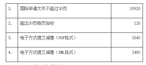 PCT申請國際階段費用標準 (金額單位:人民幣 元)