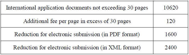 The standard for fees of PCT applications in the international phase (amount unit: RMB Yuan)